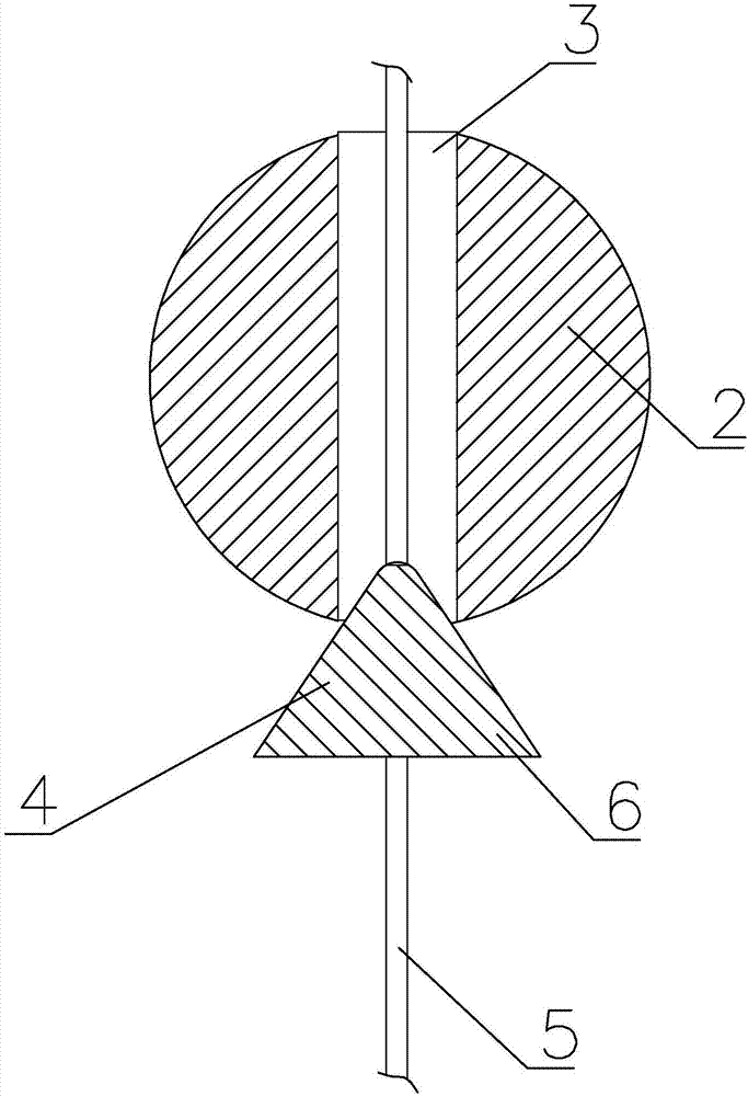 所述擋體6呈錐形結構設置,當繩索5受力作用時,錐形結構設置便于擋體6的卡于對應通孔3內,起到導向作用,使用效果好。