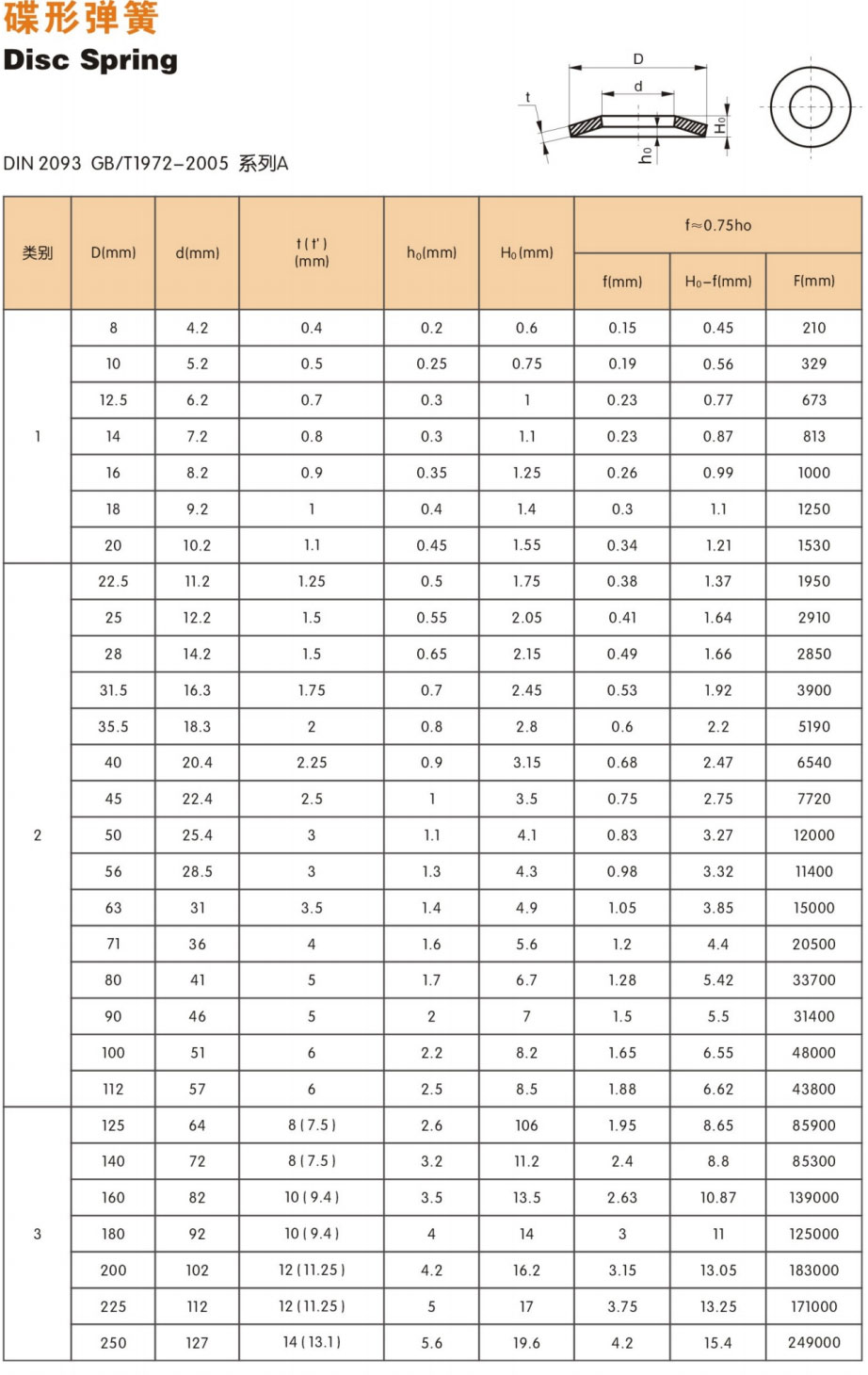 ●如上圖所示,當碟形彈簧的行程大于0.75ho